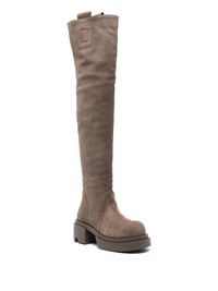 70mm Wader Bogun over-the-knee boots Highlights - Brown - Pull-on style - Pull tab - Ridged sole - Block heel Made in Italy Composition Outer: Calf Suede 100% Lining: Calf Leather 100% Sole: Rubber 100% SIZE & FIT Measurement HEEL 2.75 in(7 cm)