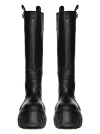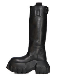 RICK OWENS FW25 CONCORDIANS PULL ON MEGA TRACTOR IN BLACK WASHED CALF LEATHER THESE PULL ON MEGA TRACTOR ARE CALF HEIGHT. THEY HAVE A PULL ON BOOT UPPER, A TOPSTITCHED SEAM ARCHING OVER THE FRONT FOOT AND A STITCHED HEEL COUNTER. THEY HAVE SIDE PULL TABS, THREE SNAP DETAIL, A STRAP AT TOP AND A ROUNDED BOZO TOE. THEY FEATURE A BACK SEAM CHANNEL FROM HEEL TO TOP AND, DOUBLE HEIGHT MEGA TRACTOR SOLE. THIS MEDIUMWEIGHT COW LEATHER IS VEG TANNED AND FINISHED USING NATURAL WAXES. A FINAL WASH GIVES THIS LEATHER ITS SOFTNESS AND BRINGS OUT THE NATURAL GRAIN TEXTURE OF EACH SKIN. BECAUSE THIS SKIN IS NAKED, NOT FINISHED USING ANY PIGMENTS COVERING THE SKIN, NATURAL MARKINGS AND SHADINGS ARE VISIBLE WHICH MAKES EACH SKIN AND PRODUCT UNIQUE. VEG TANNING MEANS ONLY VEGETAL AND NATURAL TANNINS WERE USED IN THE PROCESS OF TANNING AND PRESERVING THIS LEATHER. THIS TANNERY IS LWG CERTIFIED WITH A SILVER RATING. COLOR: BLACK MATERIAL: UPPER 100% CALF LEATHER LINING 100% CALF LEATHER INSOLE 100% CALF LEATHER SOLE 100% E.V.A SOLE AT HEEL 9CM - SOLE AT TOE 6CM