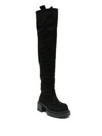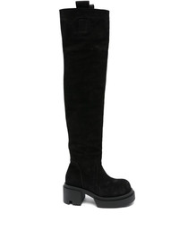 75mm platform boots Highlights - Black - Suede upper - Platform sole - Pull-on style - Round toe - Block heel Imported Composition Sole: Rubber 100% Lining: Calf Leather 100% Outer: Calf Suede 100% SIZE & FIT Measurement HEEL 2.95 in(7.5 cm) PLATFORM 1.57 in(4 cm)