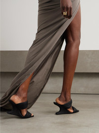 Rick Owens' mules perfectly showcase the brand's penchant for unexpected designs. Made in Italy from soft suede, they have twisted straps and a curved 80mm wedge heel. Show them off with high hems.