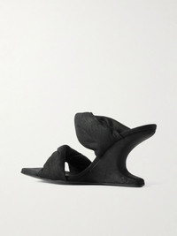 Rick Owens' mules perfectly showcase the brand's penchant for unexpected designs. Made in Italy from soft suede, they have twisted straps and a curved 80mm wedge heel. Show them off with high hems. Size & Fit - Fits true to size, take your normal size - Only available in full sizes, go up to the nearest whole size if you take a half size - Italian sizing Details & Care - Wedge heel measures approximately 80mm/ 3 inches - Black suede (Lamb) - Slip on