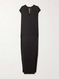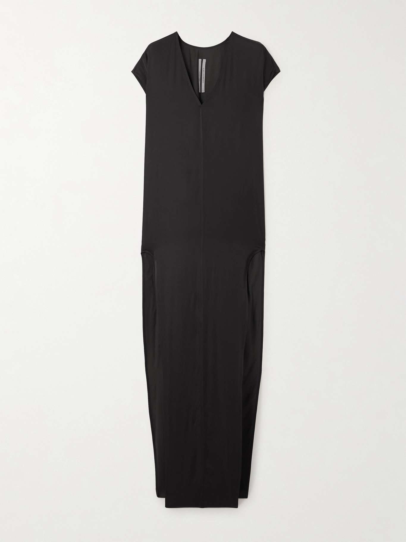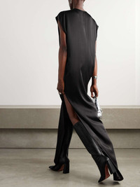 EDITORS'NOTES Rick Owens' 'Arrowhead' gown has a languid drape that flows beautifully in motion. It's cut from satin with a V-neckline and leg-baring slits at the sides. Balance the extra-long hem with platforms. SIZE & FIT - Fits true to size, take your normal size - Designed for a draped silhouette, cut to be worn very loose - Lightweight, non-stretchy fabric - Model is 177cm/ 5'10" and is wearing an IT 40 DETAILS & CARE - Dark-gray satin - Slips on - 61% acetate, 39% viscose - Dry clean