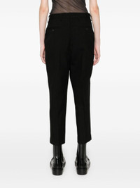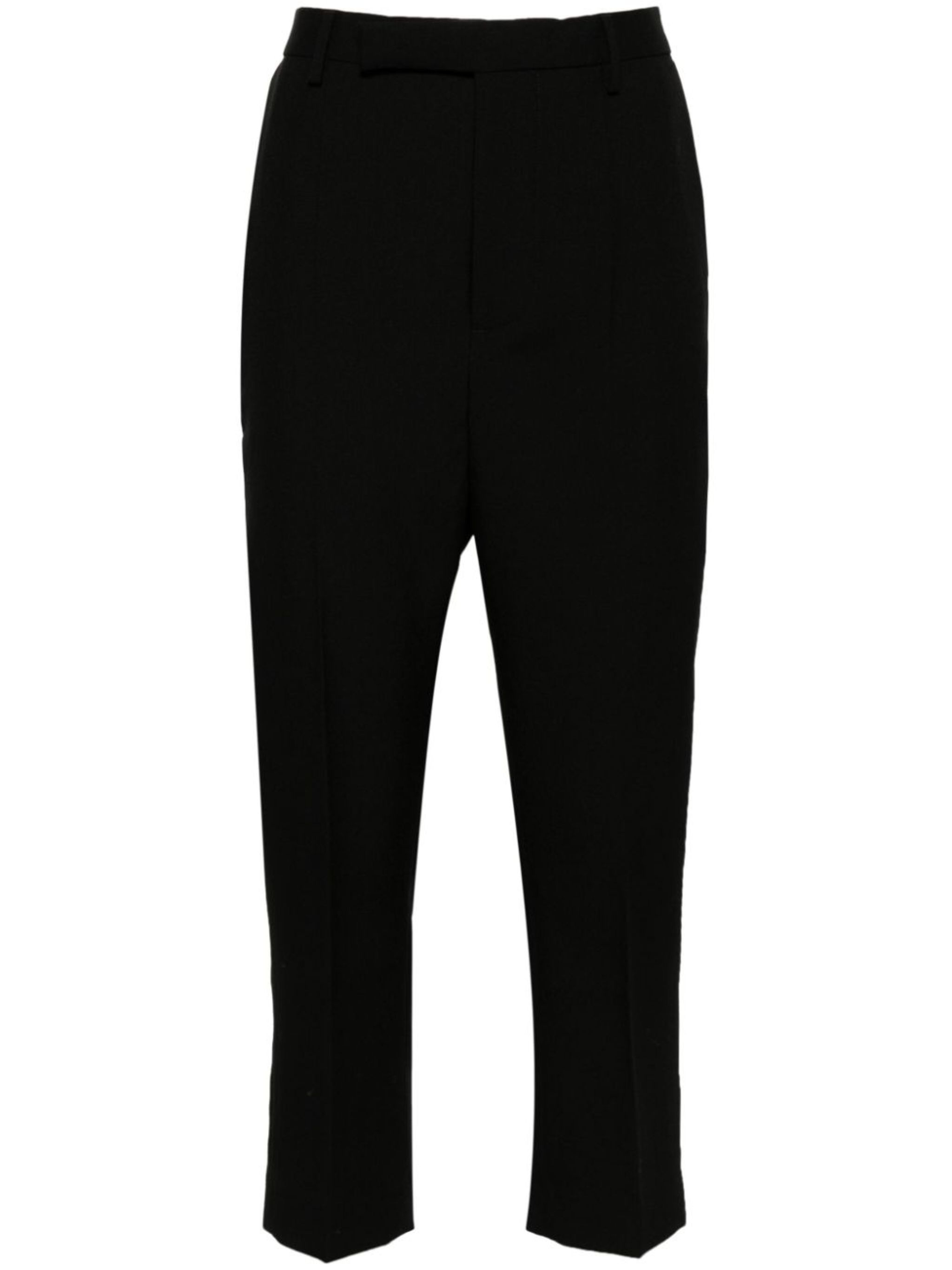 black virgin wool textured finish concealed front button, hook and zip fastening belt loops two side slash pockets pressed crease two rear welt pockets tapered leg Size & Fit Model Measurements: Height: 1.77 m Bust/Chest: 79.0 cm Hips: 88.0 cm Waist: 61.0 cm Model wears size 42 Fabric and Care Designer Style ID: RP02D3305WGP Designer Colour: 09 BLACK Composition: Outer: Buffalo horn 100%, Rws virgin wool 100%; Lining: Cupro 100% Washing instructions: Dry Clean Only Made in Italy