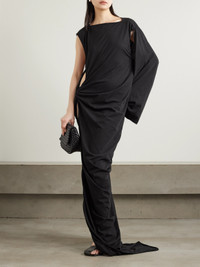 Edfu One-sleeve Draped Asymmetric Cutout Cotton-jersey Gown