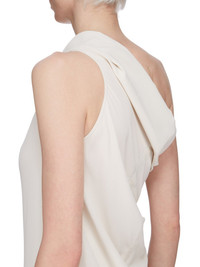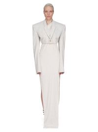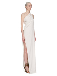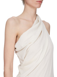 RICK OWENS SS25 HOLLYWOOD ATHENA ARROWHEAD IN DINGE COCOON CREPE THIS ATHENA ARROWHEAD IS FLOOR-LENGTH. IT HAS ONE RIGHT SHOULDER WITH AN ASYMMETRICAL NECKLINE THAT DRAPES ACROSS THE BODY. IT FEATURES A SKIRT WITH TWO HIGH SIDE SLITS WHICH TAPERS SLIGHTLY TO THE FLOOR WITH A CENTER BACK SEAM THIS LIGHTWEIGHT AND FLUID SILK BLEND CREPE HAS A DRY AND MATTE FINISH. THIS FABRIC IS MADE FROM FSC® CERTIFIED ACETATE WHICH ENSURES THAT THE FIBERS ARE PRODUCED FROM RESPONSIBLY MANAGED SOURCES AND NO DEFORESTATION OCCURS COLOR: DINGE MATERIAL: 64% ACETATE + 36% ACETATE MODEL IS 181CM TALL MODEL WEARS SIZE 40