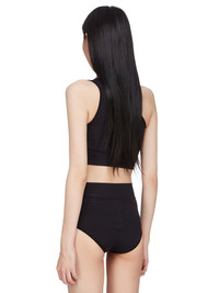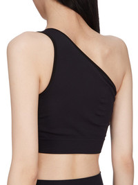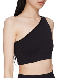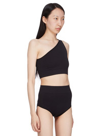 RICK OWENS SS25 HOLLYWOOD ATHENA BRA IN BLACK ACTIVE KNIT THIS ATHENA BRA IS SKIN TIGHT WITH AN ASYMMETRICAL NECKLINE AND SINGLE SHOULDER. IT FEATURES A SEAMLESS KNIT, WITH A RIBBED BAND UNDER THE BUST AND KNIT GEOMETRIC SIDE LINE DETAILS THIS MEDIUMWEIGHT ACTIVE KNIT IS KNITTED WITH ELASTANE FOR COMFORT COLOR: BLACK MATERIAL: 95% NYLON + 5% ELASTANE MODEL IS 181CM TALL MODEL WEARS SIZE S