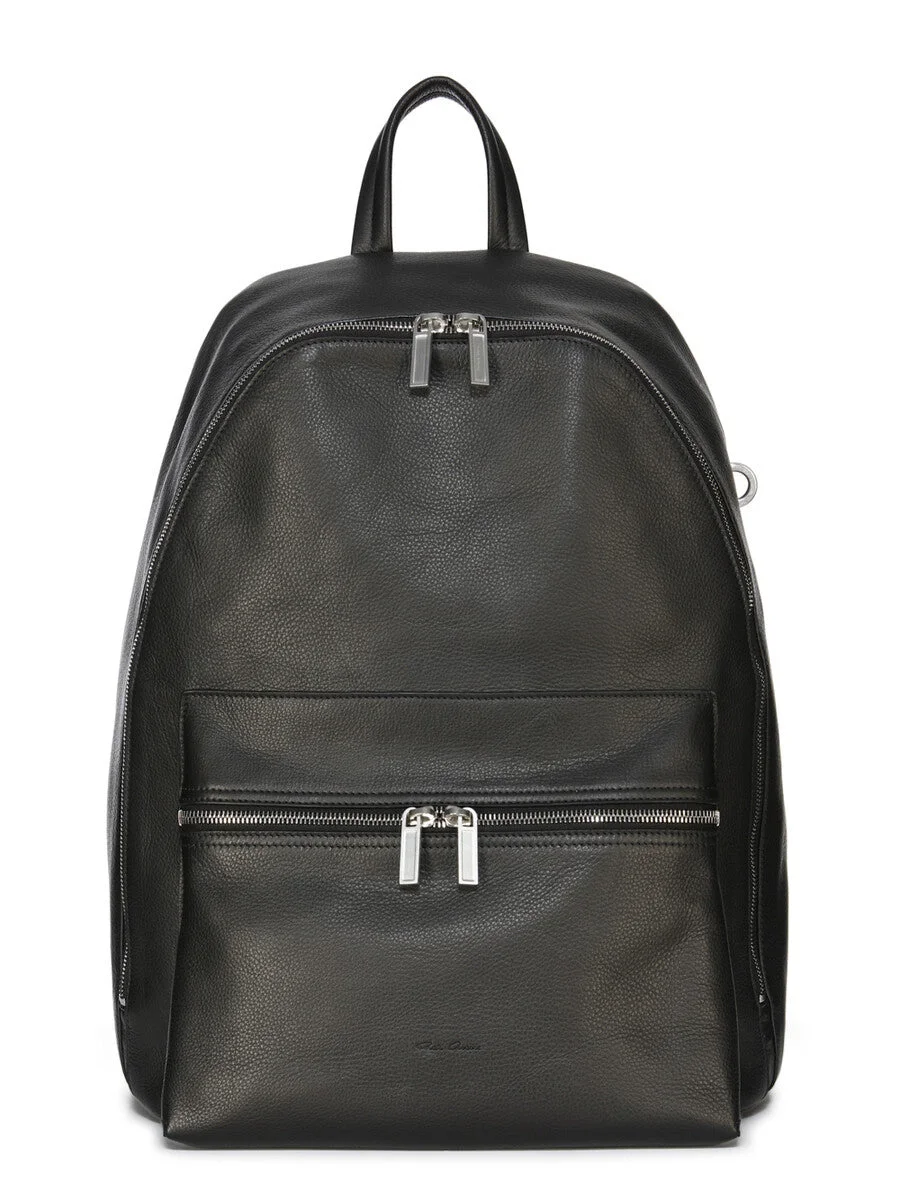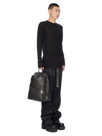 RICK OWENS FW25 CONCORDIANS BACKPACK IN BLACK SOFT GRAIN COW LEATHER THIS BACKPACK IS A CLASSIC SHAPE WITH A SQUARE BOTTOM AND A ROUNDED TOP, IT HAS ONE LARGE MAIN DOUBLE ZIPPERED POCKET WITH A SECOND FRONT ZIPPERED POUCH. IT HAS A TOP HANDLE AND TWO ADJUSTABLE LEATHER AND COTTON WEBBING CARRY STRAPS. THE INTERNAL, PADDED POCKET CAN FIT UP TO A 16” COMPUTER. THE BACK IS PADDED FOR EXTRA COMFORT AND SIGNATURE STITCHED DOUBLE TAG LABEL. THIS MEDIUMWEIGHT COW LEATHER HAS A SUBTLE GRAIN TEXTURE AND NATURAL HANDFEEL. TANNED IN THE VENETO AREA OF ITALY, THIS LEATHER IS TUMBLED MULTIPLE TIMES IN A LARGE DRUM IN ORDER TO BRING OUT THE NATURAL GRAIN TEXTURE OF THE SKIN. THE LEATHER IS FINISHED WITH ANILINE AND AIR-DRYED IN ORDER TO ACHIEVE THE NATURAL AND WAXY HANDFEEL. THIS TANNERY IS LWG CERTIFIED WITH A SILVER RATING. COLOR: BLACK MATERIAL: 100% CALF LEATHER IT MEASURES 34CM X 44CM X 23CM