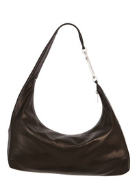 RICK OWENS FW25 CONCORDIANS CROPPED GEMINI BAG IN BLACK GLOSSY BUTTER CALF LEATHER THIS GEMINI CROPPED BAG IS A SMALLER VERSION OF OUR LARGE GEMINI BAG. IT IS A SOFT A-SHAPED BAG THAT SLOUCHES IN THE MIDDLE. IT CURVES OVER TO CREATE A STRAP THAT SECURES WITH A GEMINI DOUBLE-ENDED SNAP HOOK ENGRAVED WITH THE RICK OWENS LOGO. THE BAG OPENS WITH A TOP ZIP, HAS AN INNER POUCH POCKET, AND A FLAT POCKET WITH SIGNATURE U-SHAPED STITCHING DETAIL VISIBLE ON THE REAR EXTERIOR. THIS LIGHTWEIGHT GLOSSY BUTTER FULL CALF LEATHER IS FINISHED USING ANALINE AND NATURAL OILS IN ORDER TO ACHIEVE ITS BUTTERY HANDFEEL. IT IS FINISHED BY HOT PRESS IN ORDER TO ACHIEVE THE SHINY SURFACE. COLOR: BLACK MATERIAL: 100% CALF LEATHER IT MEASURES 46CM X 22CM X 12CM