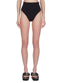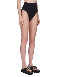 RICK OWENS SS25 HOLLYWOOD DIRT BRIEF IN BLACK STRETCH SWIM JERSEY THIS DIRT BRIEF IS A HIGH WAISTED BATHER WITH A SKIN TIGHT FIT THIS MEDIUMWEIGHT CLASSIC SWIMWEAR JERSEY HAS COMFORT STRETCH, A MATTE FINISH AND IS PRODUCED ESPECIALLY FOR SWIMWEAR WITH HIGH UV AND CHLORINE RESISTANCE. IT IS MADE USING ECONYL® RECYCLED POLYAMIDE, MADE FROM 100% WASTE MATERIAL THAT WOULD OTHERWISE POLLUTE THE EARTH. COLOR: BLACK MATERIAL: 79% NYLON + 21% ELASTANE MODEL IS 181CM TALL MODEL WEARS SIZE 40