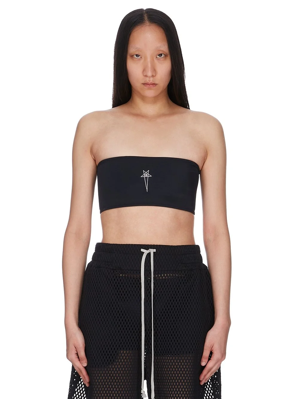 CHAMPION X RICK OWENS SS25 BRA IN BLACK SWIM JERSEY IT FEATURES A 3D CHAMPION X RICK OWENS PENTAGRAM LOGO PATCH ON RIGHT FRONT THIS MEDIUMWEIGHT CLASSIC SWIMWEAR JERSEY HAS COMFORT STRETCH, A MATTE FINISH AND IS PRODUCED ESPECIALLY FOR SWIMWEAR WITH HIGH UV AND CHLORINE RESISTANCE THIS JERSEY IS MADE USING CERTIFIED RECYCLED POLYAMIDE WHICH ENSURES A REDUCTION IN WATER CONSUMPTION, EMISSIONS AND HAZARDOUS WASTE, LESSENING THE DEPENDENCE ON NON-RENEWABLE RESOURCES COLOR: BLACKMATERIAL: 80% POLYAMIDE 20% ELASTANE MODEL WEARS SIZE S MODEL IS 181CM TALL