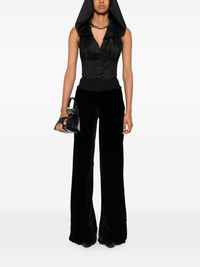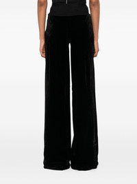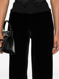 velvet panel trousers Highlights - Black - Velvet texture - Wide leg - High waist - Elasticated waistband - Panelled design Made in Italy Composition FSC Viscose 82%, Cotton 65%, Polyamide 35%, Silk 18% SIZE & FIT Model measurements Height 5 ft 10 in(1.77 m) Bust/Chest 33.07 in(84 cm) Hips 37 in(94 cm) Waist 24.8 in(63 cm) Washing instructions Dry Clean Only
