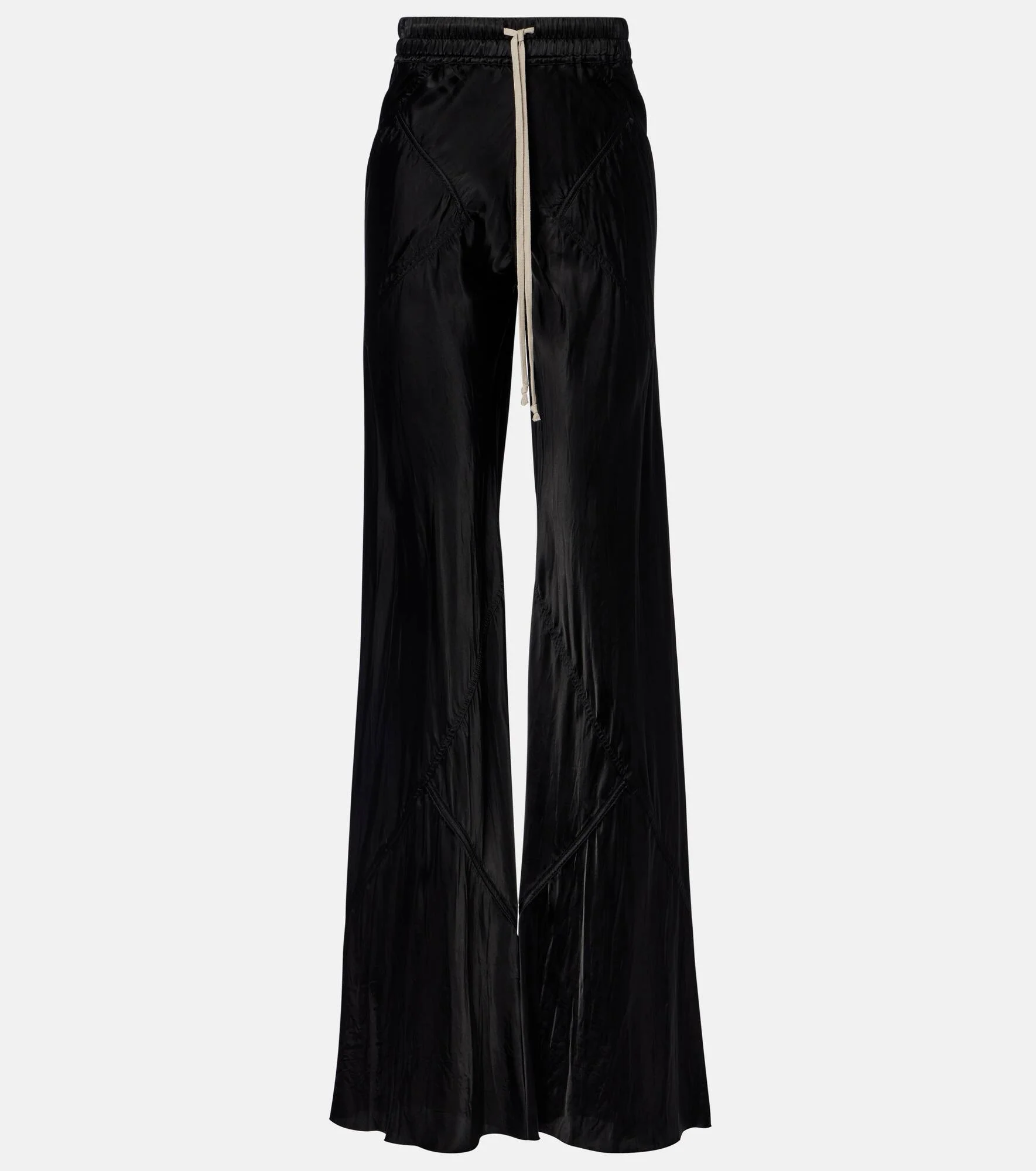 The Bias pants from Rick Owens lend a casual-cool outlook to your ensembles. Crafted with a shiny finish, this wide-leg style features a ribbed elasticated waistband and side pockets. Product Details - Material: 100% cupro - Care instructions: hand wash - Made in Italy - Color: black - Designer color name: Black - Item color: black - Elasticated drawstring waist - Pockets: slant pockets - Item number: P01137336 Size & Fit - True to size - Sizing adapted to taller women - Elasticated waist - Adjustable at the waist - Non-stretchy fabric - Flared - The model seen in the picture is 178cm-5'10" and wearing a size IT 40