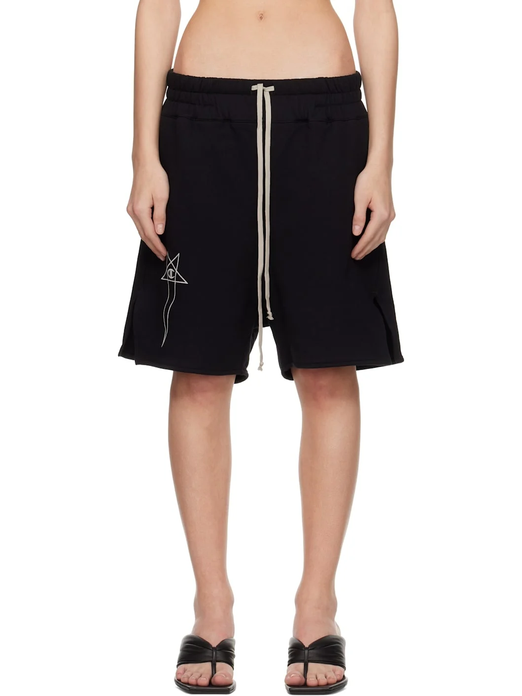 GOTS-certified organic cotton French terry shorts. · Drawstring at elasticized waistband · Two-pocket styling · Logo embroidered at front · Dropped inseam · Vented outseams · Embroidered logo patch at back Part of the Rick Owens x Champion collaboration. Supplier color: Black 100% organic cotton. Made in Italy 252232F088002