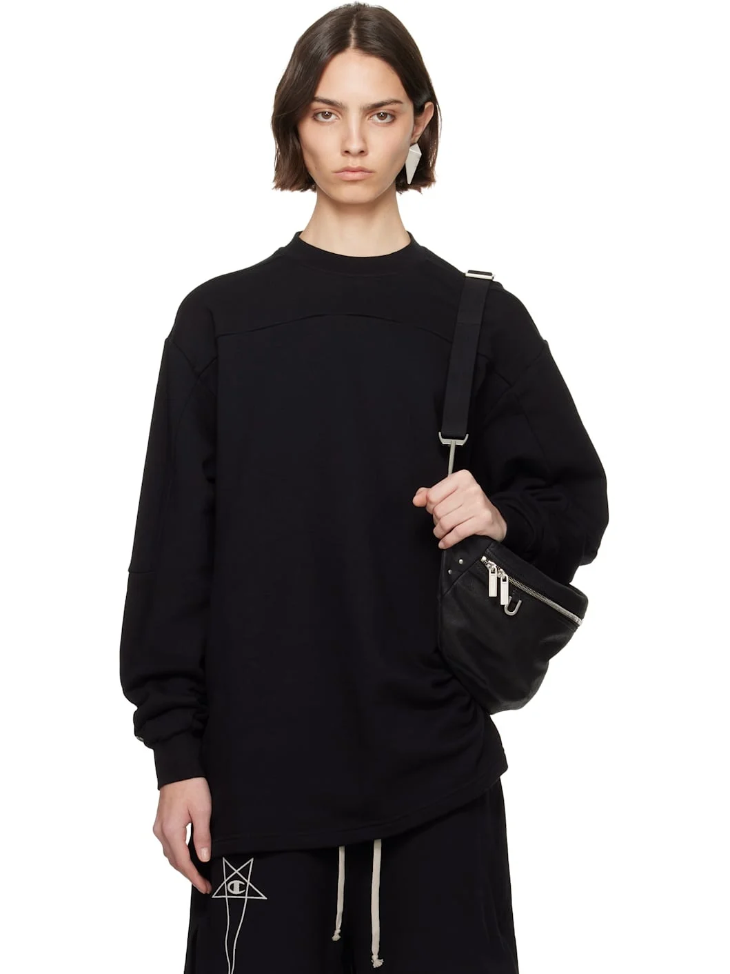 GOTS-certified organic cotton French terry sweatshirt. · Rib-knit crewneck and cuffs · Yoke sleeves · Embroidered logo patch at cuff · Central seam at back Part of the Rick Owens x Champion collaboration. Supplier color: Black Body: 100% organic cotton. Trim: 96% cotton, 4% elastane. Made in Italy 252232F098004