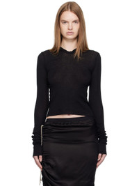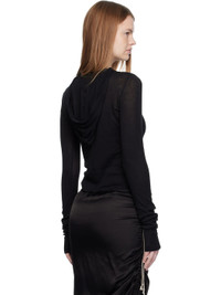 Semi-sheer organic cotton jersey hoodie. · Cropped hem · Raw edge at hem and cuffs · Central seam at back Supplier color: Black 100% organic cotton. Made in Italy 252232F110035