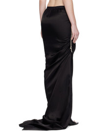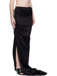 Cupro satin maxi skirt. · Draped construction · Elasticized waistband · Ruching and slit at side seam · Train and raw edge at hem Supplier color: Black 100% cupro. Made in Italy 252232F093000