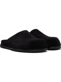 Suede slip-on loafers. · Logo embossed at molded footbed · Treaded rubber sole Supplier color: Black Upper: leather. Sole: rubber. Made in Italy 252232F121005