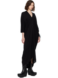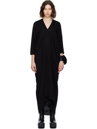Knit viscose- and angora wool-blend maxi dress. · Semi-sheer and lightweight · FSC-certified viscose · Paneled construction · V-neck · Gathering at front · Rolled edge at hem · Central seam at back Supplier color: Black 30% polyamide, 30% viscose, 20% angora wool, 20% wool. Made in Italy 252232F055001