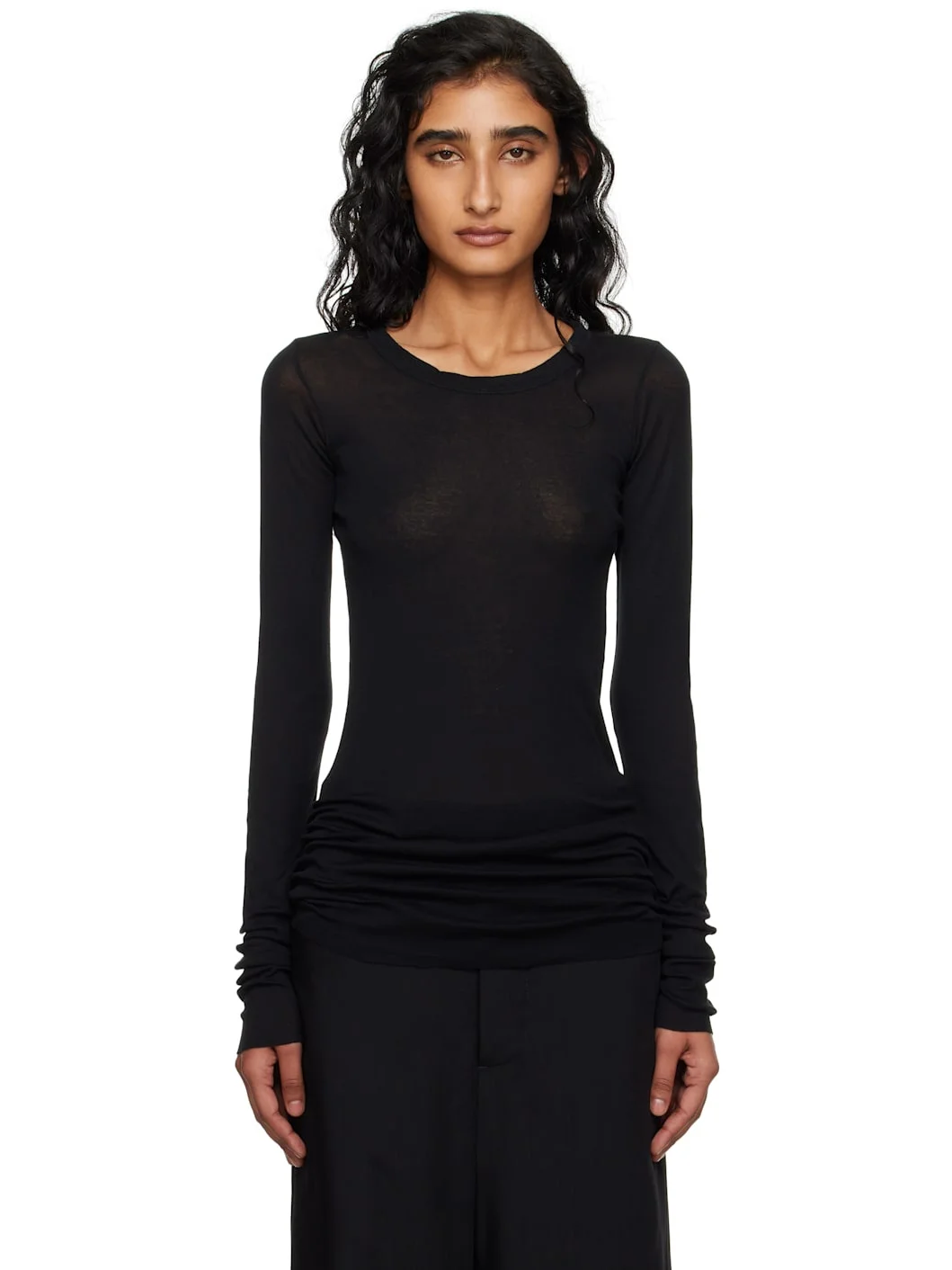 GOTS-certified organic cotton ribbed jersey T-shirt. · Semi-sheer and lightweight · Crewneck · Raw edge at hem and cuffs · Central seam at back Supplier color: Black 100% organic cotton. Made in Italy 252232F110025