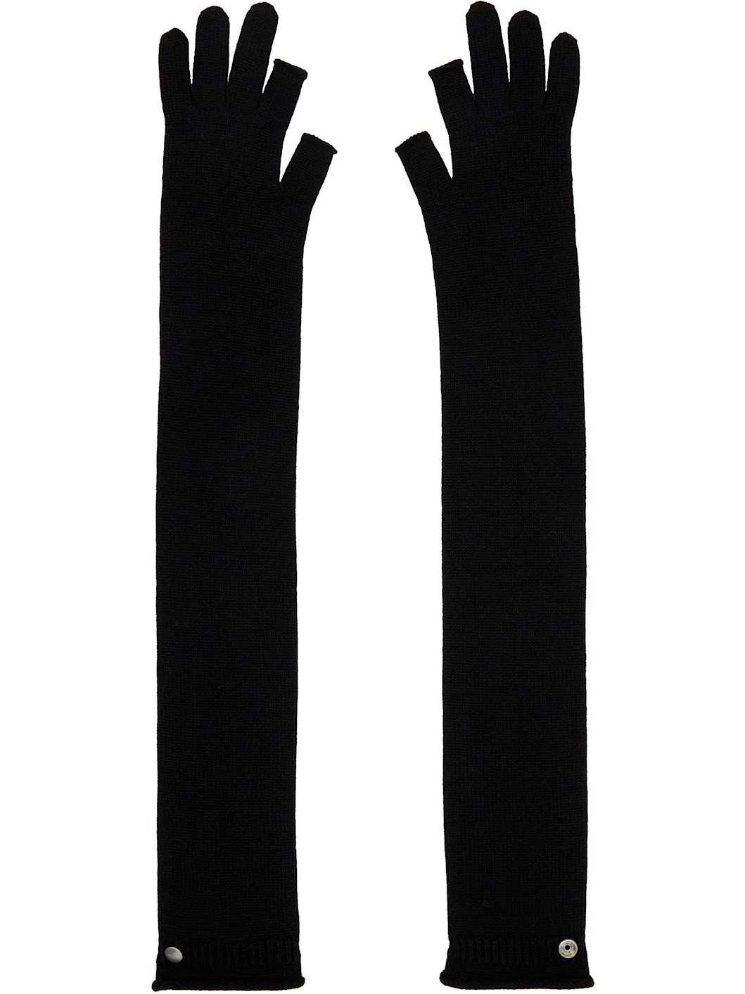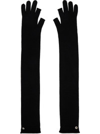 Pair of elbow-length knit virgin wool gloves. · Rolled edge at cuffs, index, and thumb · Logo-engraved press-stud at top cuffs Supplier color: Black 100% virgin wool. Made in Italy 252232F012004