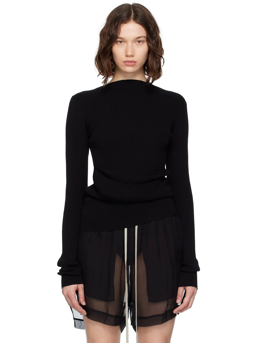 Rib-knit ECOVERO™ viscose-blend sweater. · Boatneck · Draping at front · Central garter-stitch stripe at back Supplier color: Black 68% viscose, 32% polyester. Made in Italy 252232F110038