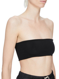 RICK OWENS SS26 TEMPLE BANDEAU TOP IN BLACK VISCOSE STRETCH JERSEY THIS BANDEAU IS A STRAPLESS TUBE TOP THAT COVERS THE BUST THIS HEAVYWEIGHT VISCOSE STRETCH JERSEY IS COMPACT WITH A COMFORT STRETCH. IT HAS A SEMI-SHINY SURFACE AND A SOFT HANDFEEL THIS FABRIC IS MADE FROM FSC® CERTIFIED (FSC – C162846) ACETATE WHICH ENSURES THAT THE FIBERS ARE PRODUCED FROM RESPONSIBLY MANAGED SOURCES AND NO DEFORESTATION OCCURS WE STRIVE TO KEEP OUR PRODUCTION AS LOCAL AS POSSIBLE. THE FULL MANUFATURING CYCLE OF THIS PRODUCT, FROM THE MATERIAL KNITTING TO SEWING AND FINISHING, WAS UNDERTAKEN CLOSE TO OUR HOME BASE IN CONCORDIA, ITALY COLOR: BLACK MATERIAL: 96% VISCOSE + 4% ELASTANE MODEL IS 181CM TALL MODEL WEARS SIZE 40