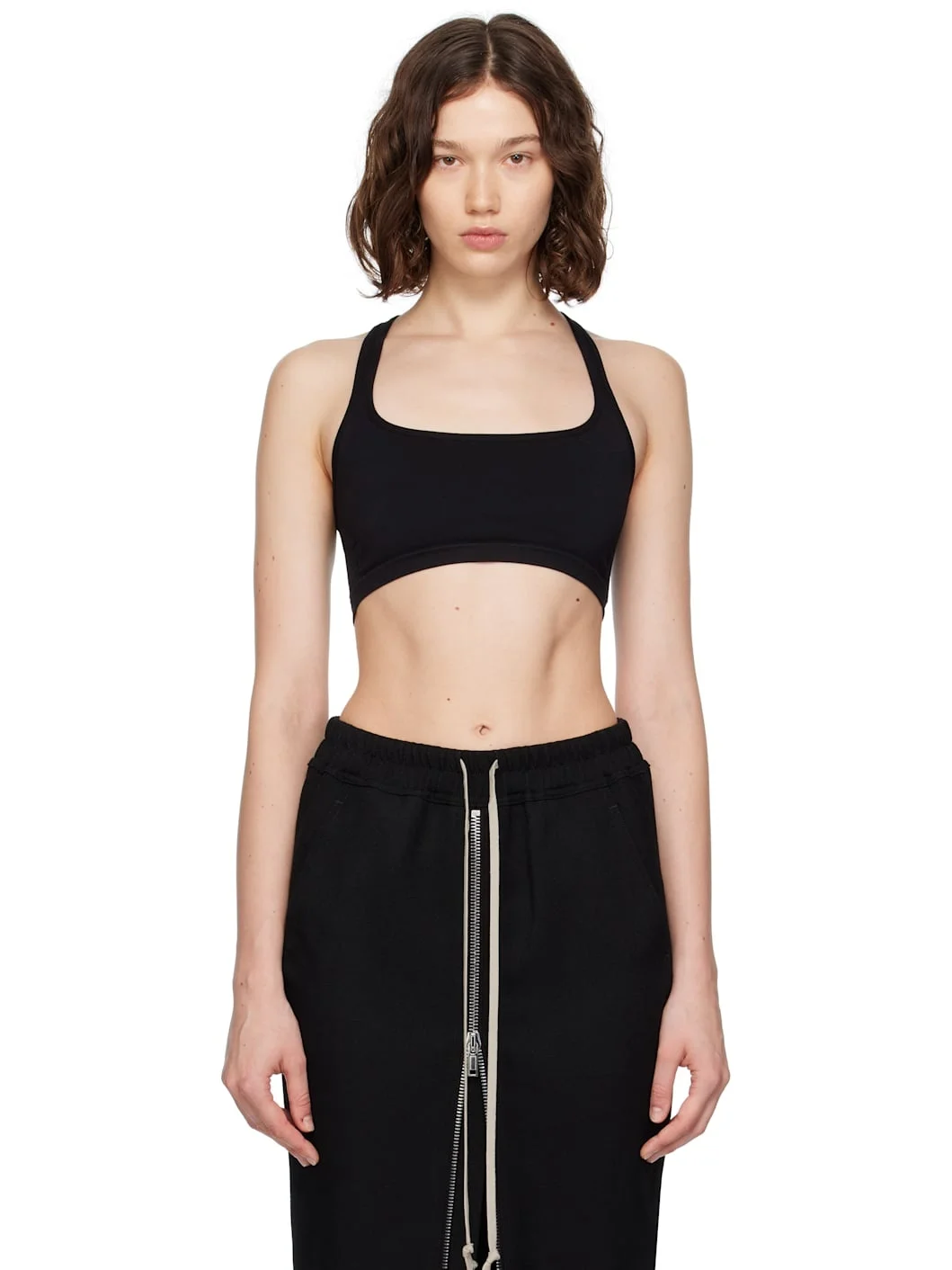 Knit stretch nylon sport bra. · Square neck · Elasticized hem · Rib-knit detailing at side seams · Racer back Supplier color: Black 95% nylon, 5% elastane. Made in Italy 252232F111006