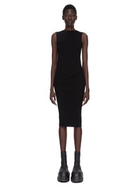 RICK OWENS FW25 CONCORDIANS SL BABEL DRESS IN BLACK RIBBED KNIT THIS SL BABEL DRESS IS MID CALF LENGTH AND SLEEVELESS. IT HAS A HIGH BOAT NECK, AND A DRAPE ON THE RIGHT WITH THE RISING SLIGHTLY TO THE LEFT. IT HAS THE SIGNATURE KNIT CHANNEL RUNNING DOWN THE CENTRE BACK SPINE THIS MEDIUMWEIGHT VISCOSE RIB KNIT IS STRETCHY WITH A DRY HANDFEEL COLOR: BLACK MATERIAL: 68% VISCOSE + 32% POLYESTER MODEL IS 181CM TALL MODEL WEARS SIZE S