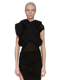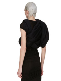 RICK OWENS SS25 HOLLYWOOD TRIPLE DONUT IN BLACK CLASSIC COTTON JERSEY THIS TRIPLE DONUT CONSISTS OF THREE LARGE INTERLINKED CIRCULAR TUBES THAT CAN BE WORN MULTIPLE WAYS AROUND THE BODY THIS MEDIUMWEIGHT CLASSIC COTTON JERSEY IS COMPACT WITH A DRY HANDFEEL. THIS JERSEY IS MADE USING GOTS CERTIFIED ORGANIC COTTON WHICH MEANS THE NATURAL FIBER IS GROWN WITHOUT HARMFUL CHEMICALS, LEAVING OUR SOIL, AIR AND WATER CLEANER FROM CONTAMINATES WE STRIVE TO KEEP OUR PRODUCTION AS LOCAL AS POSSIBLE. THE FULL MANUFACTURING CYCLE OF THIS PRODUCT, FROM THE MATERIAL KNITTING TO SEWING AND FINISHING, WAS UNDERTAKEN CLOSE TO OUR HOME BASE IN CONCORDIA, ITALY. COLOR: BLACK MATERIAL: 100% COTTON PADDING 100% POLYESTER MODEL IS 181CM TALL ITEM IS AVAILABLE IN ONE SIZE
