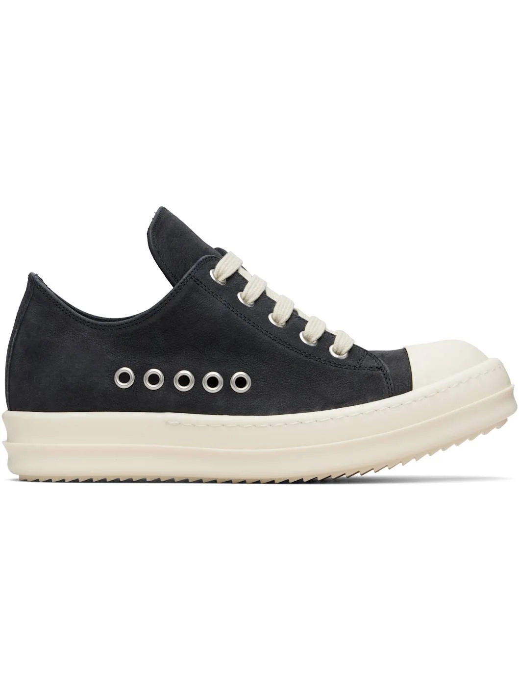 Low-top grained calfskin nubuck sneakers. · Leather-cap toe · Lace-up closure · Metal eyelets at outer side · Buffed leather lining · Treaded rubber sole Supplier color: Black/Milk/Milk Upper: calfskin. Sole: rubber. Made in Italy 261232F128022