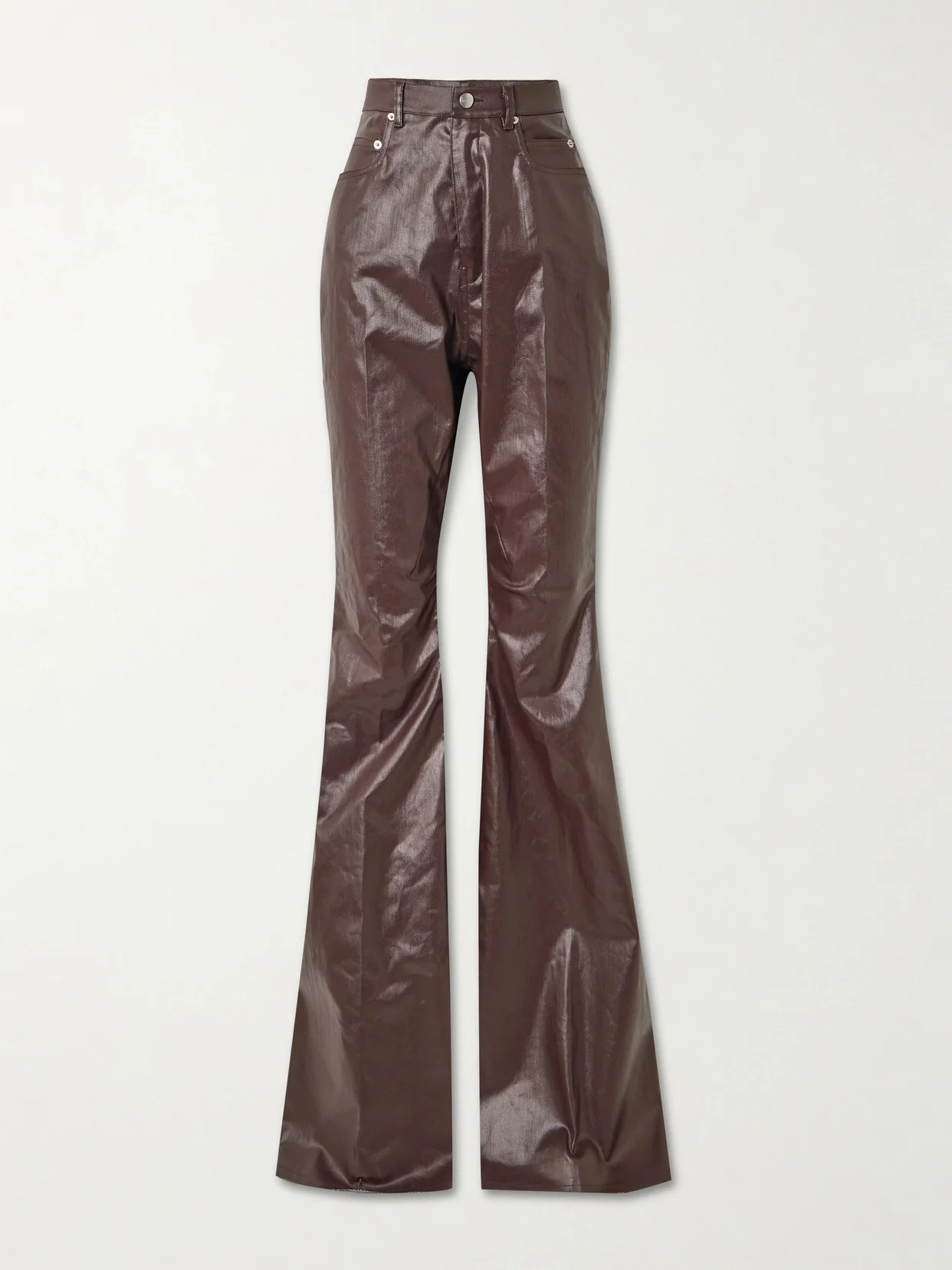 Rick Owens is renowned for its cool, exaggerated elements - these 'Bolan' jeans are designed to fit slim through the hips and thighs before flaring out dramatically at the pooling hems. They're made from denim that's coated for a subtle shine and have a particularly high waist.