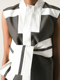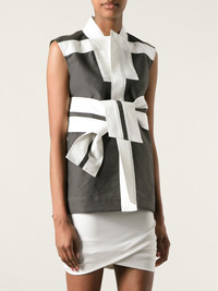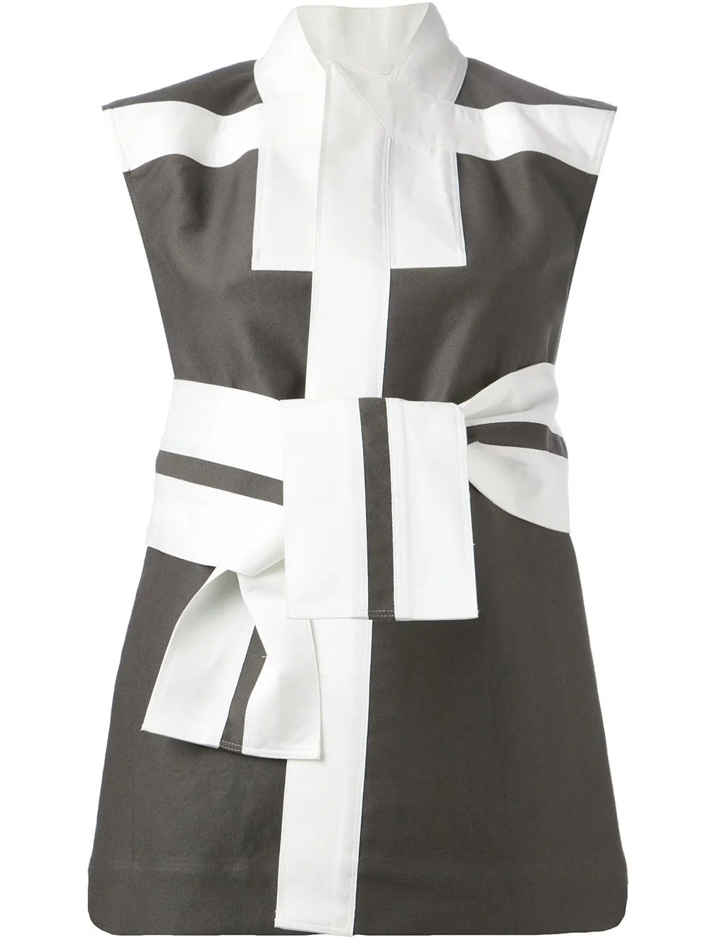 'Brion' short jacket Grey and milky white cotton 'Brion' short jacket from Rick Owens featuring a round neck, a sleeveless design, a concealed front fastening and a tie waist. Made in Italy Composition Outer: Cotton 100% Lining: Cupro 100% Washing instructions Dry Clean Only