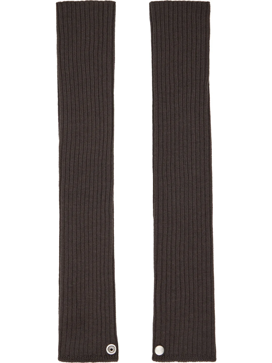 Pair of elbow-length rib-knit virgin wool arm warmers. · Thumb opening at cuffs · Logo-engraved press-stud at top cuffs Supplier color: Dark dust 100% virgin wool. Made in Italy 252232F012002