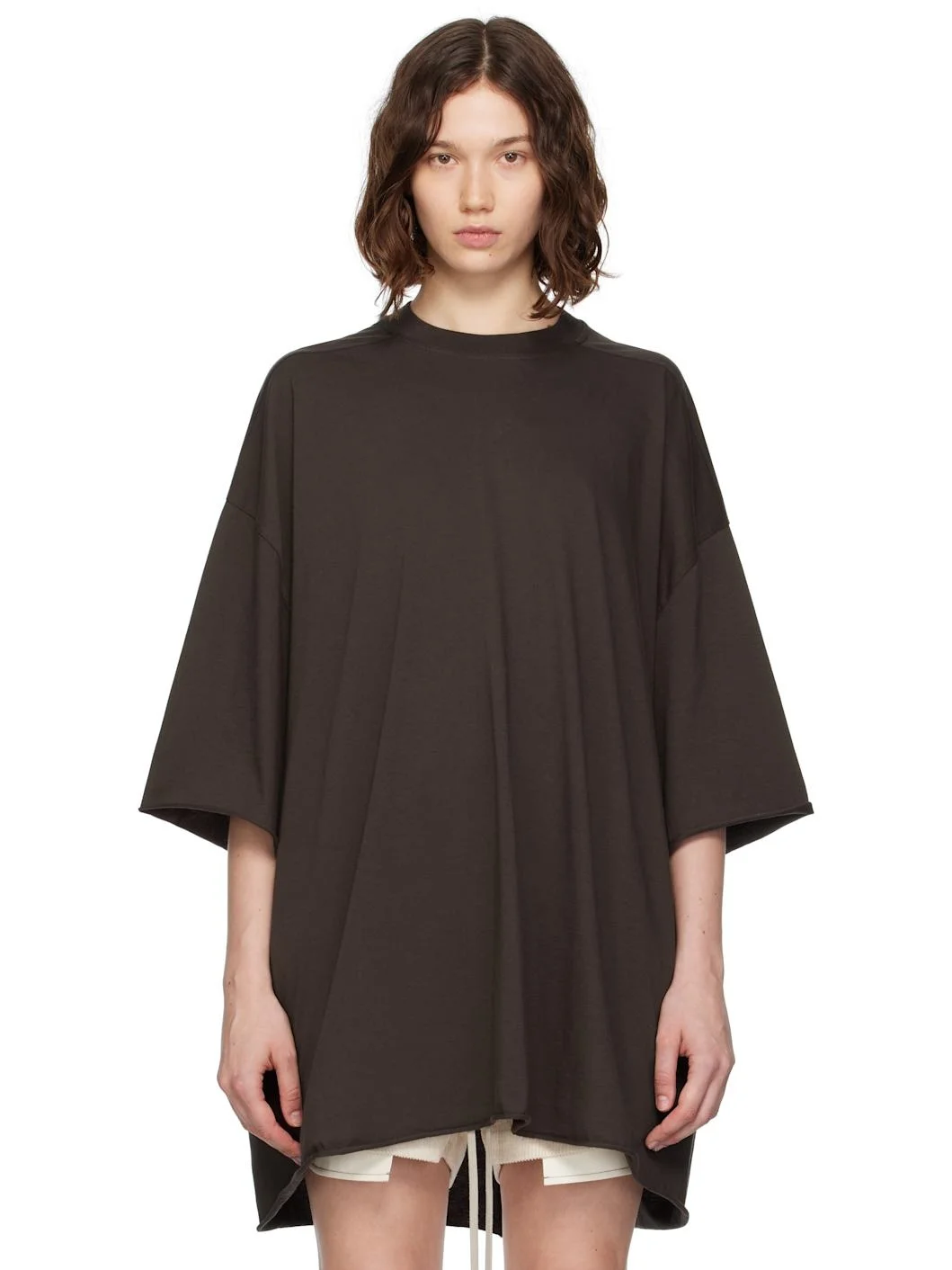 GOTS-certified organic cotton jersey T-shirt. · Rib-knit crewneck · Rolled edge at hem and cuffs · Dropped shoulders · Central seam at back Supplier color: Dark dust 100% cotton. Made in Italy 252232F110009