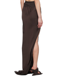 Lightweight acetate-blend charmeuse maxi skirt. · Rib-knit trim at elasticized waistband · Slit at side seam · Train at back Supplier color: Mahogany Body: 61% acetate, 39% viscose. Trim: 65% cotton, 35% nylon. Made in Italy 251232F093030