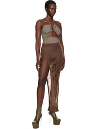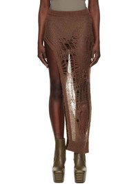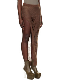 Open-knit nylon- and mohair-blend maxi skirt. Laddering throughout. · Rib-knit waistband and hem · Slit at side seam Supplier color: Mahogany 50% polyamide, 46% mohair, 4% wool. Made in Italy 251232F093006