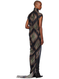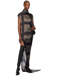 Cupro satin maxi dress. · Paneled construction · Turtleneck · Raw edge at asymmetric hem · Slit at outseam · Extended train at back hem · Integrated webbing strap at interior · Horn hardware Supplier color: Throat plaid 100% cupro. Made in Italy 242232F055038