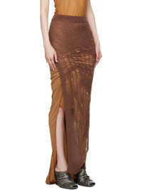 Tapered brushed open knit nylon- and mohair-blend skirt. Rib knit trim and laddering throughout. · Elasticized waistband · Slit at side seam Supplier color: Saddle 50% polyamide, 46% mohair, 4% wool. Made in Italy 242232F093002
