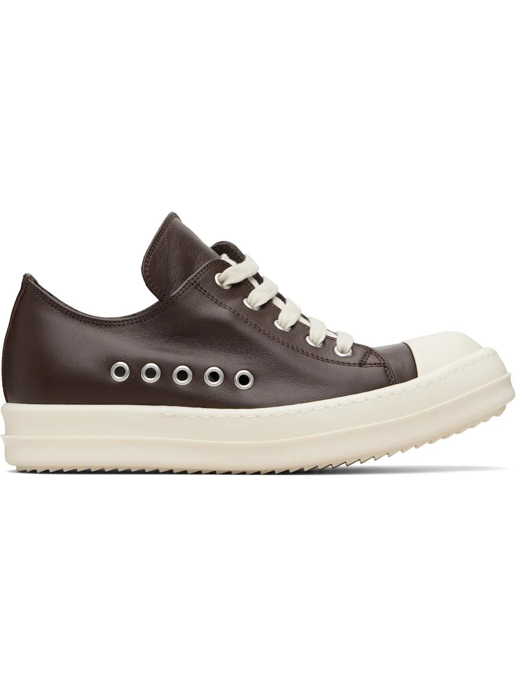 Low-top grained leather sneakers. · Leather-cap toe · Lace-up closure · Metal eyelets at outer side · Buffed leather lining · Treaded rubber sole Supplier color: Macassar/Milk/Milk Upper: leather. Sole: rubber. Made in Italy 261232F128025