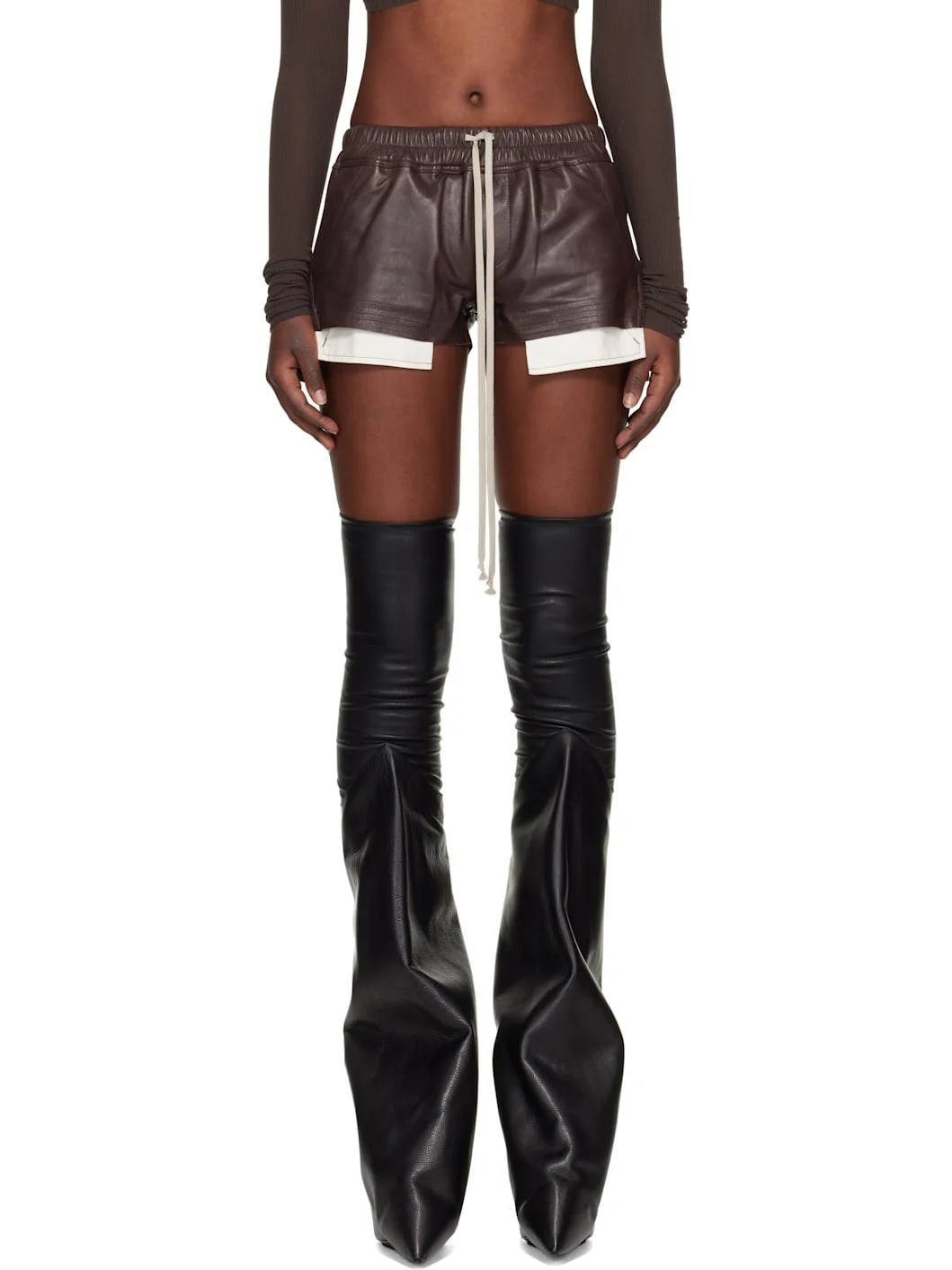 Brown Temple Fog Leather Shorts