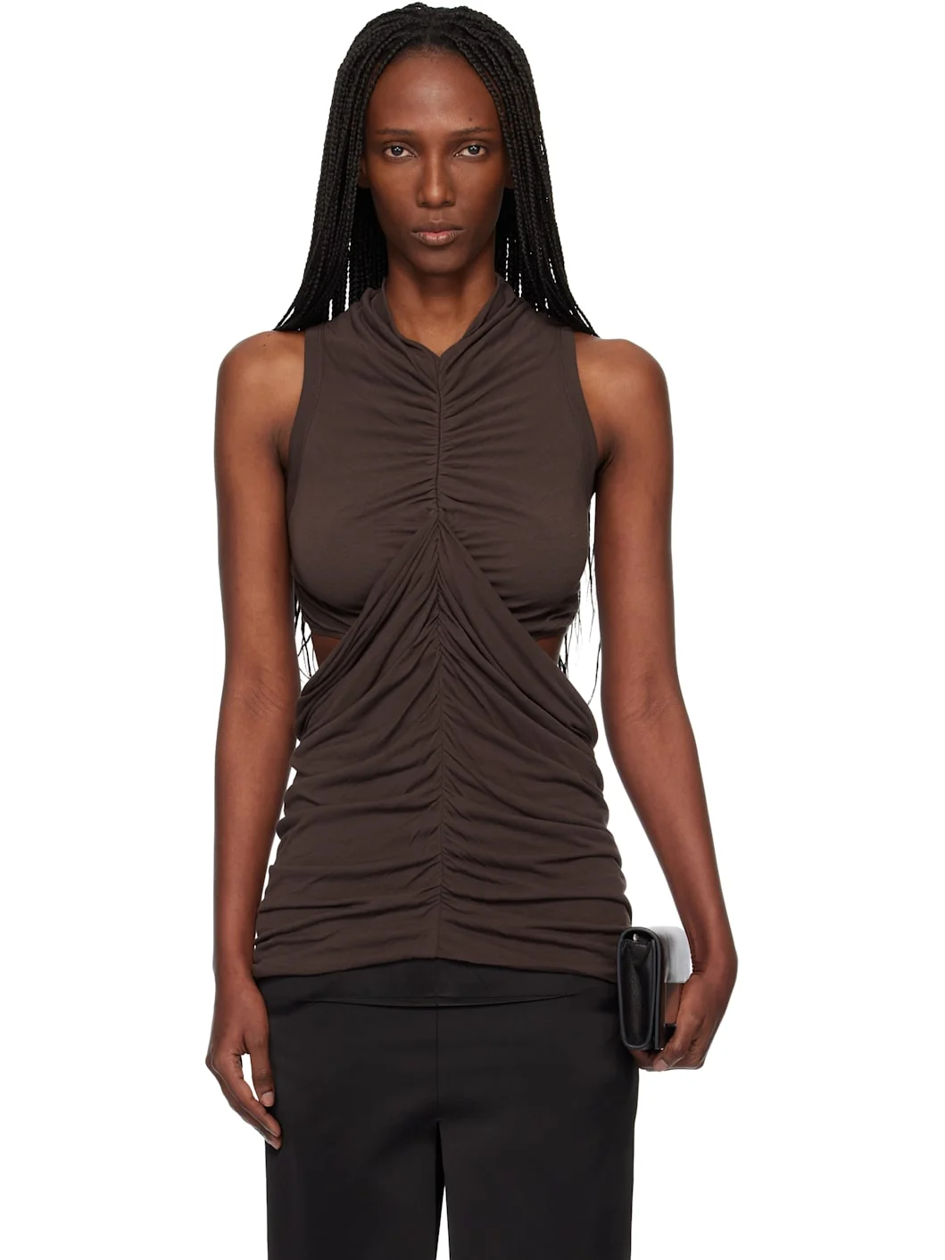 Viscose- and silk-blend jersey top. · FSC-certified viscose · Ruching throughout · Draped construction · V-neck · Cutout at back Supplier color: Macassar 88% viscose, 12% silk. Made in Italy 261232F111012