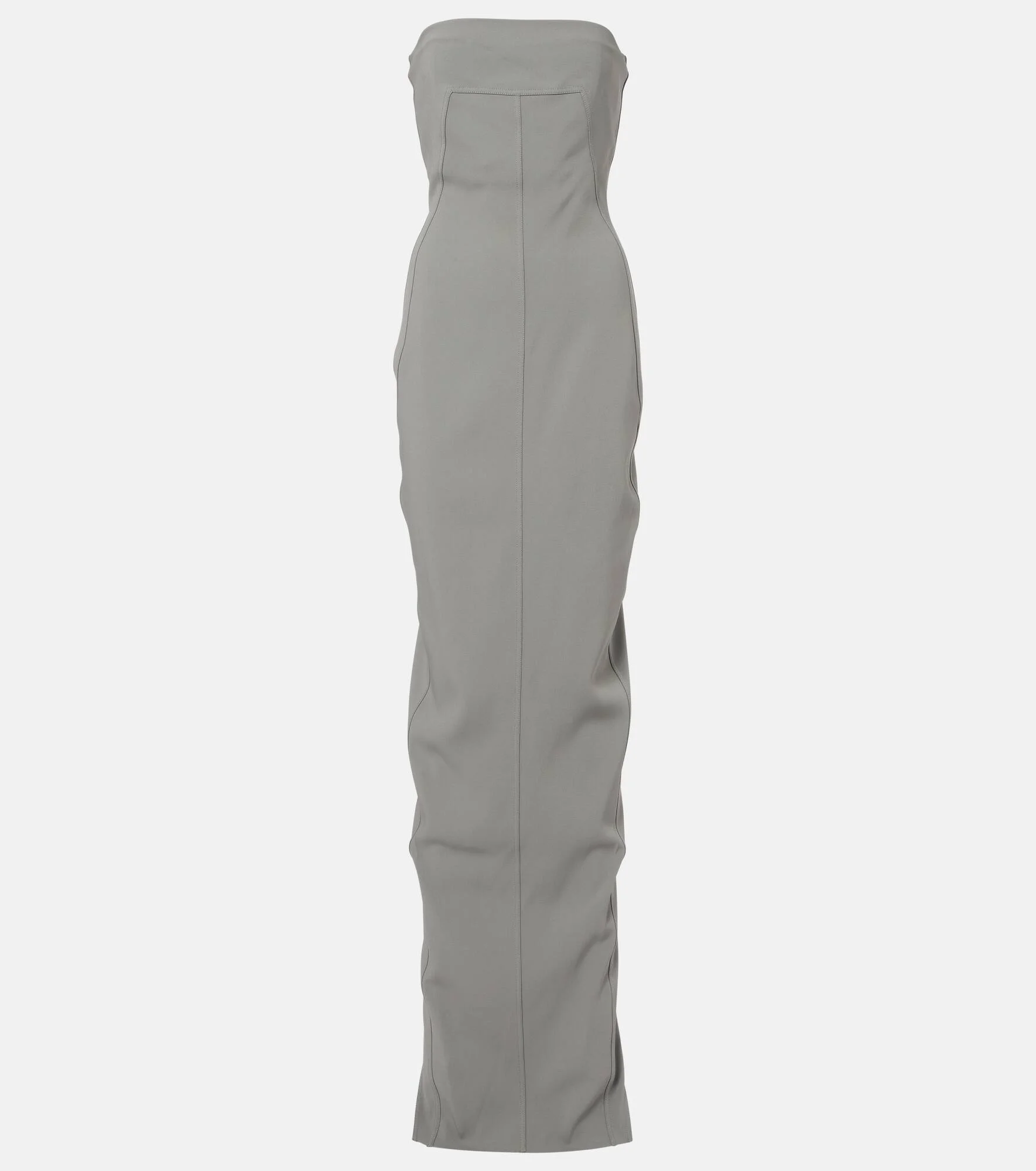 Aptly nicknamed The Lord of Darkness, Rick Owens brings gothic and industrial inspiration to avant-garde design. This bustier gown is knitted into a body-hugging silhouette and complete with tonal topstitching. Product Details - Material: 60% viscose, 36% acetate, 4% elastane - Care instructions: dry clean - Made in Italy - Color: grey - Designer color name: Euca - Material II: 84% polyamide, 16% elastane - Boning - Built-in bustier - Closure: zipped back - Long vent - Item number: P01137289 Size & Fit - True to size - Ideal fit for larger bust sizes - Strapless - Internal boned corset for support - Fitted - Slightly stretchy fabric - slit length 82cm-32.5" - The model seen in the picture is 178cm-5'10" and wearing a size IT 40