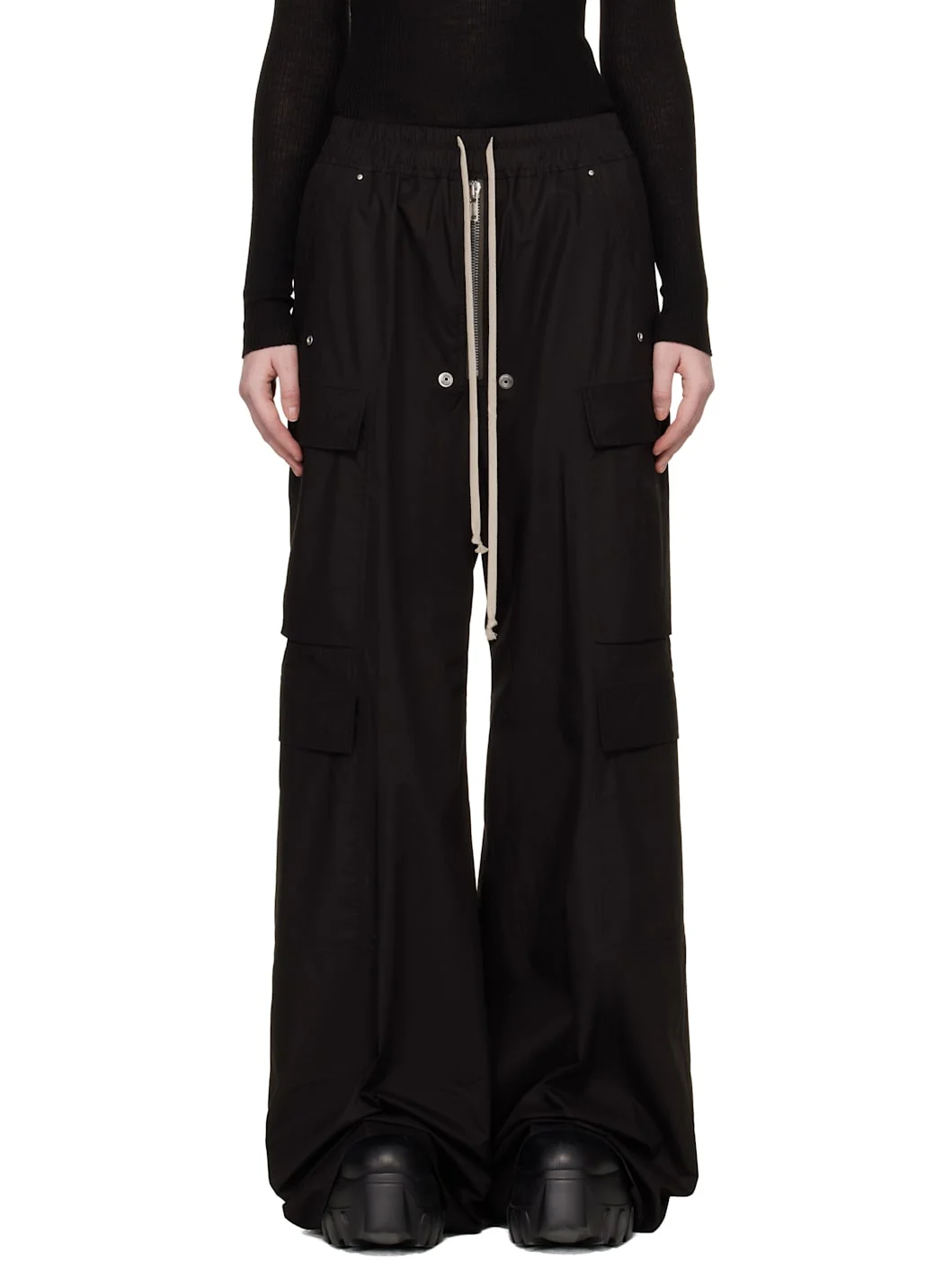 Organic cotton poplin cargo pants. · GOTS-certified organic cotton · Wide-leg · Drawstring at elasticized waistband · Four-pocket styling · Exposed zip fly · Rivets, grommets, and press-stud hardware at front · Creased legs · Cargo pockets at outseams · Dropped inseam Supplier color: Black 100% organic cotton. Made in Italy 261232F087021