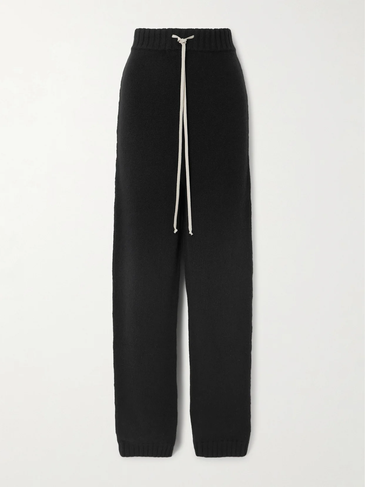 Those in the know will instantly recognize these track pants as a Rick Owens style by the extra long drawstrings at the waist. Understated and comfortable, they're made from cozy cashmere and have a dropped crotch and relaxed fit.