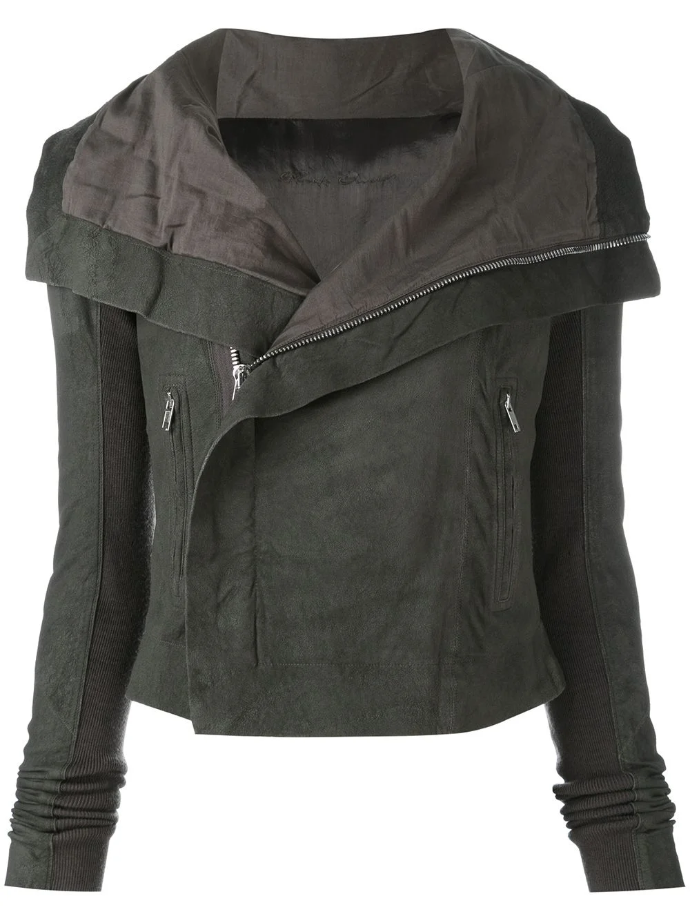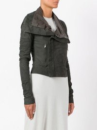 classic biker jacket Dark dust grey lambskin classic biker jacket from Rick Owens featuring a foldover neck, a concealed zip fastening, front zipped pockets and long sleeves. Made in Italy Composition Lamb Skin 100% SIZE & FIT Model measurements Height 5 ft 11 in(1.8 m) Bust/Chest 33.85 in(86 cm) Hips 35.82 in(91 cm) Waist 24.01 in(61 cm) Washing instructions Specialist Cleaning