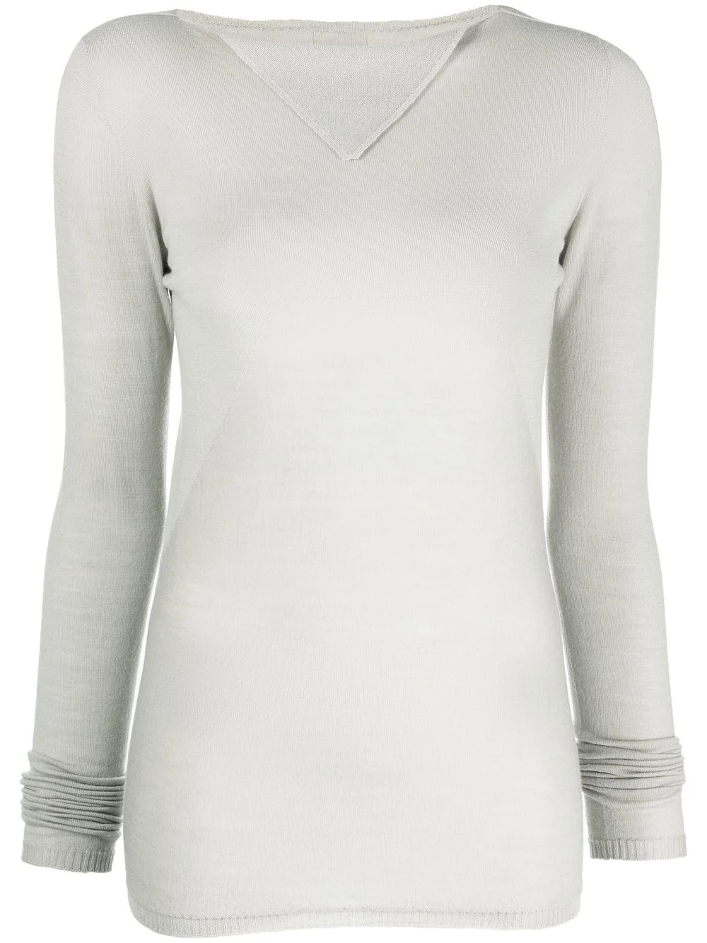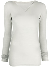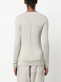 Column knit sweater alabaster virgin wool fine knit semi-sheer construction round neck folded edge long sleeves ribbed cuffs and hem adjustable fit Made in Italy Composition Virgin Wool 100% SIZE & FIT Model measurements Height 5 ft 10 in(1.77 m) Bust/Chest 29.92 in(76 cm) Hips 34.25 in(87 cm) Waist 23.62 in(60 cm) FittingInformation This piece fits true to size. We recommend you get your regular size Cut for a slim fit Made with a mid-weight fabric Washing instructions Hand Wash