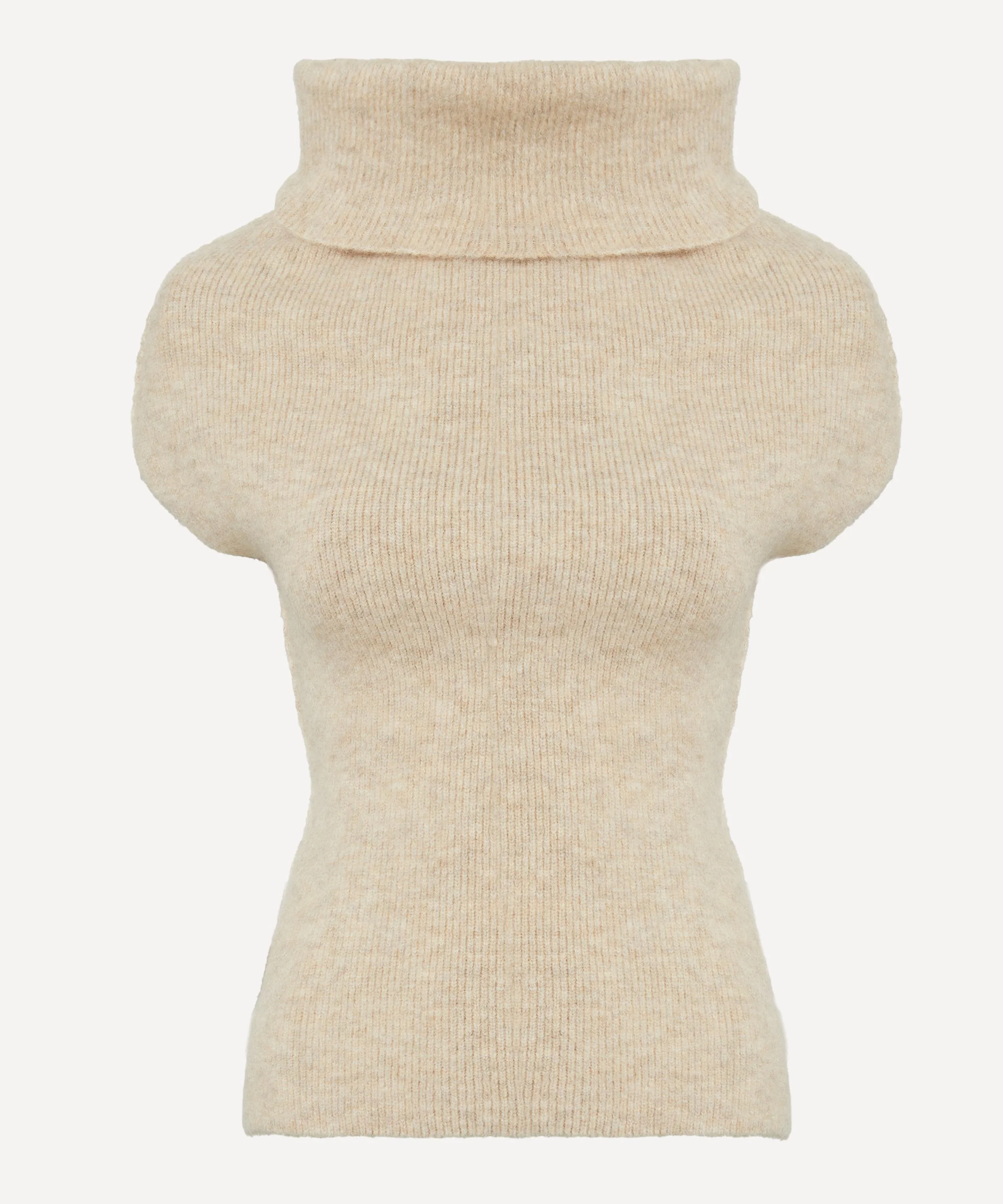 DETAILS Alpaca-blend knitted top Relaxed, hip-length fit Ribbed cowl neckline Wide shoulders Cap-like sleeves Signature knit line down centre-back spine SIZE & FIT Model is 175cm/5'9"; Chest: 77cm; Waist: 57cm; Hip: 87cm and wears a size S COMPOSITION & CARE 48% Alpaca; 30% Nylon; 20% Wool; 2% Elastane Dry clean