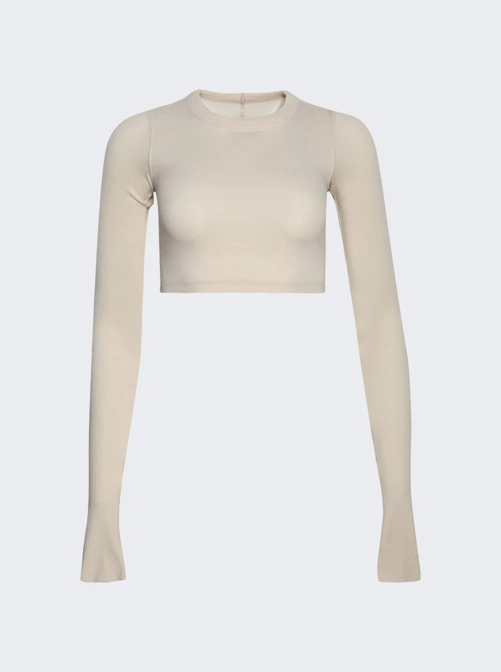 Details - Slim fit - Round neckline - Cropped silhouette - Long sleeves - Straight hem - Care according to label - Material: 100% Cotton - Model is 5'9"/175cm and is wearing a size IT40 Brand Style: RP01E7220 JNC Designer/Brand: RICK OWENS
