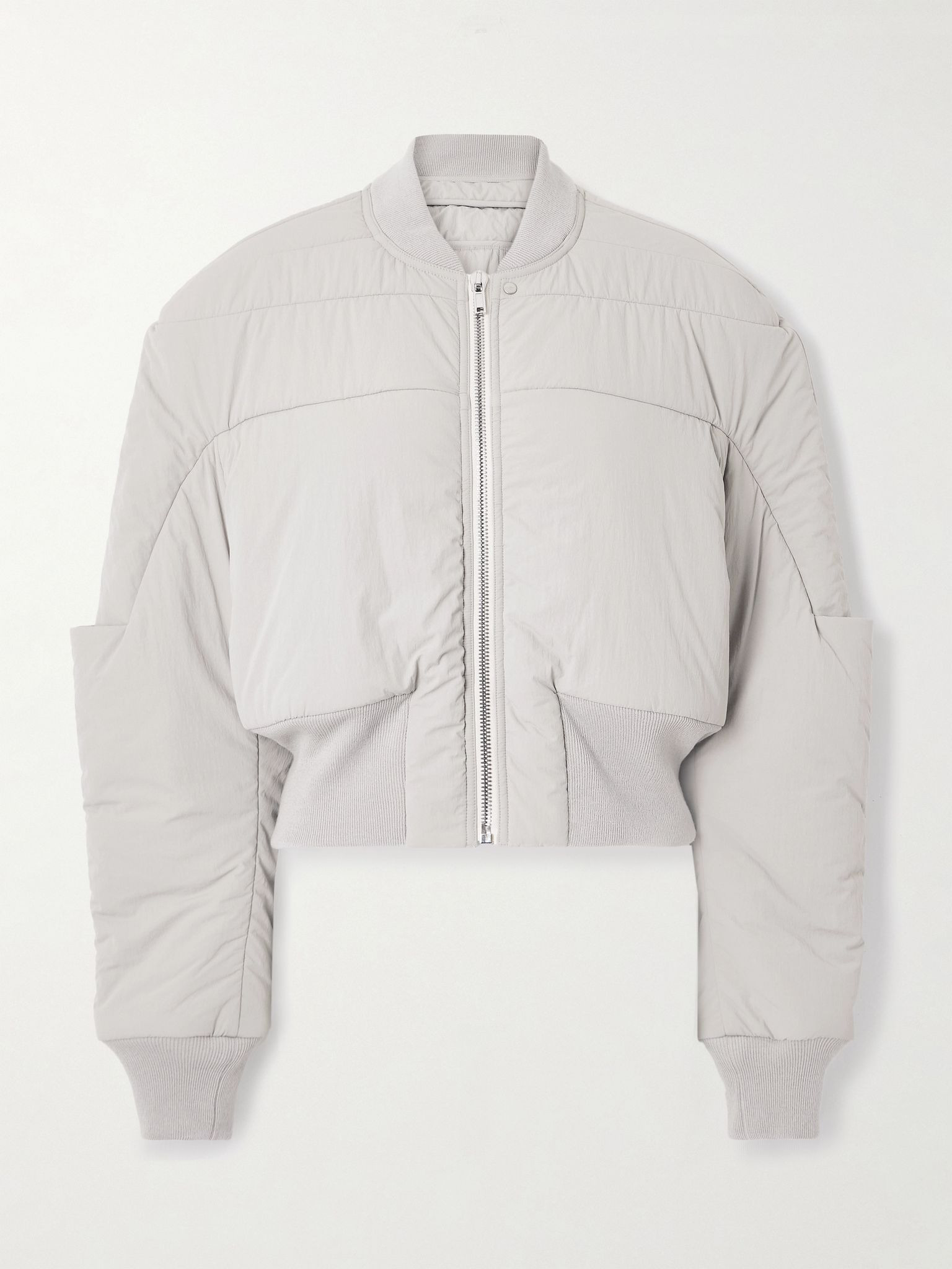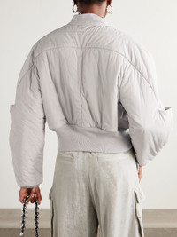 Rick Owens is renowned for exaggerated proportions, and this bomber jacket is a perfect example. Made from shell, it's filled with insulating down in a puffy shape that's tempered by a ribbed wool hem and cuffs. Size & Fit - Fits true to size, take your normal size - Designed for a relaxed fit - Cropped length - Padded, non-stretchy fabric - Model is 180cm/ 5'11" and is wearing an IT 40 Model measurements: - Bust: 75cm/ 29.5" - Waist: 60.5cm/ 24" - Hip: 88.5cm/ 35" Details & Care - Light-grey shell and wool - Zip fastening through front - 100% polyamide; trim: 100% wool; filling: 80% down, 20% feathers (Duck) - Fully lined - Dry clean
