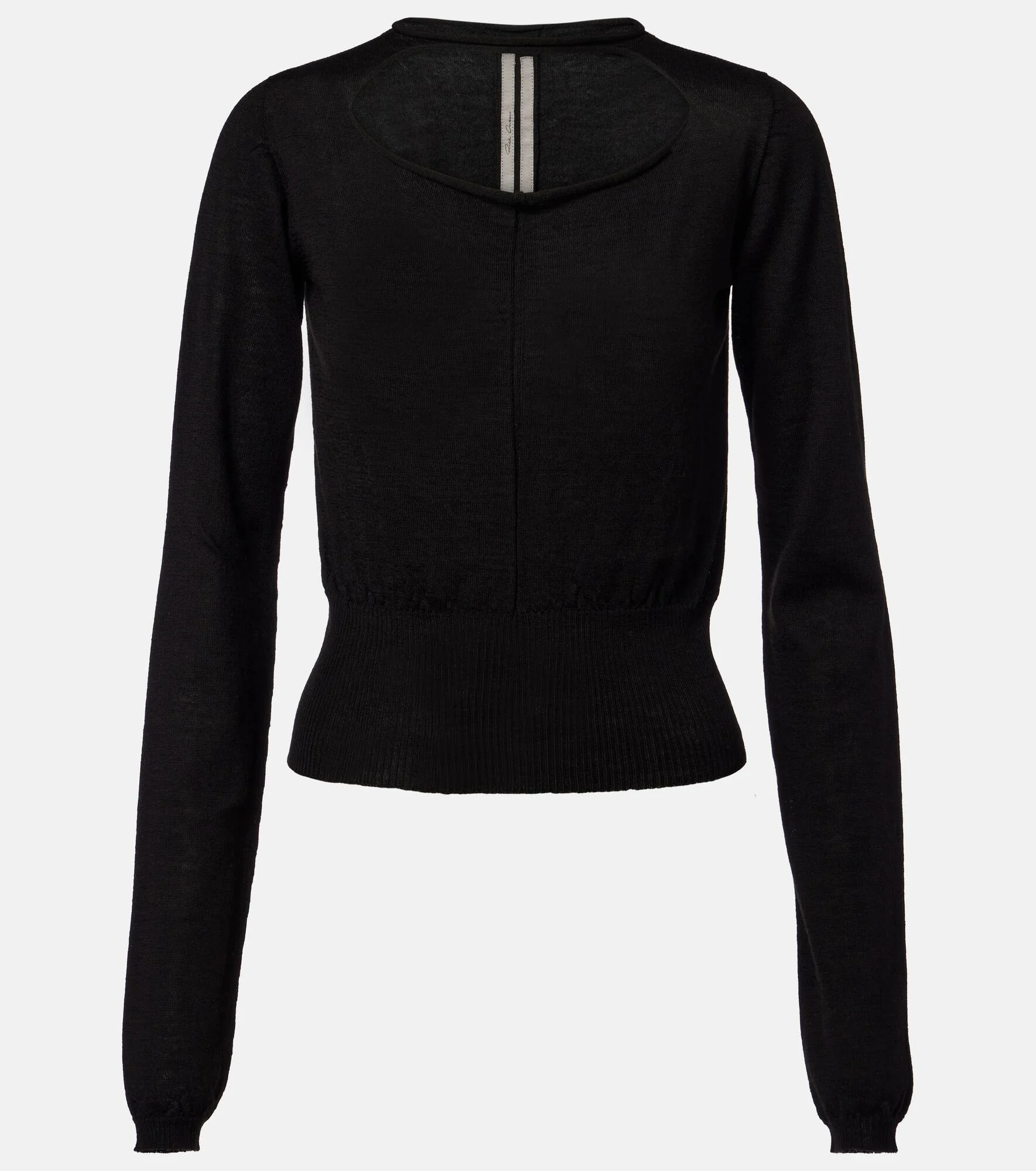 Aptly nicknamed The Lord of Darkness, Rick Owens brings gothic and industrial inspiration to avant-garde design. This virgin wool top is made in Italy featuring a cutout with unstitched edges. Product Details - Material: 100% virgin wool - Care instructions: hand wash cold - Made in Italy - Color: black - Designer color name: Black - Item color: black - Hem: ribbed, elasticated - Item number: P01137377 Size & Fit - True to size - Semi-sheer - Fitted - Stretchy fabric - Cropped - The model seen in the picture is 178cm-5'10" and wearing a size XS